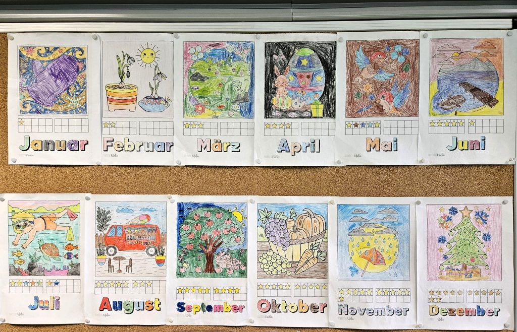 Ich habe die Kinder in kleine Gruppen eingeteilt und gemeinsam die Bilder im Jahreskalender ausmalen lassen. Das machte allen großen Spaß und unterstützte das Lernen zusätzlich – man sagt ja nicht umsonst: Von der Hand in den Kopf! Die ausgemalten Seiten hingen das ganze Schuljahr über in unserem Klassenraum, direkt neben der Tafel, an der wir morgens das Datum und den jeweiligen Monat notieren. So wurde der Jahreskalender zur täglichen Gedächtnisstütze.